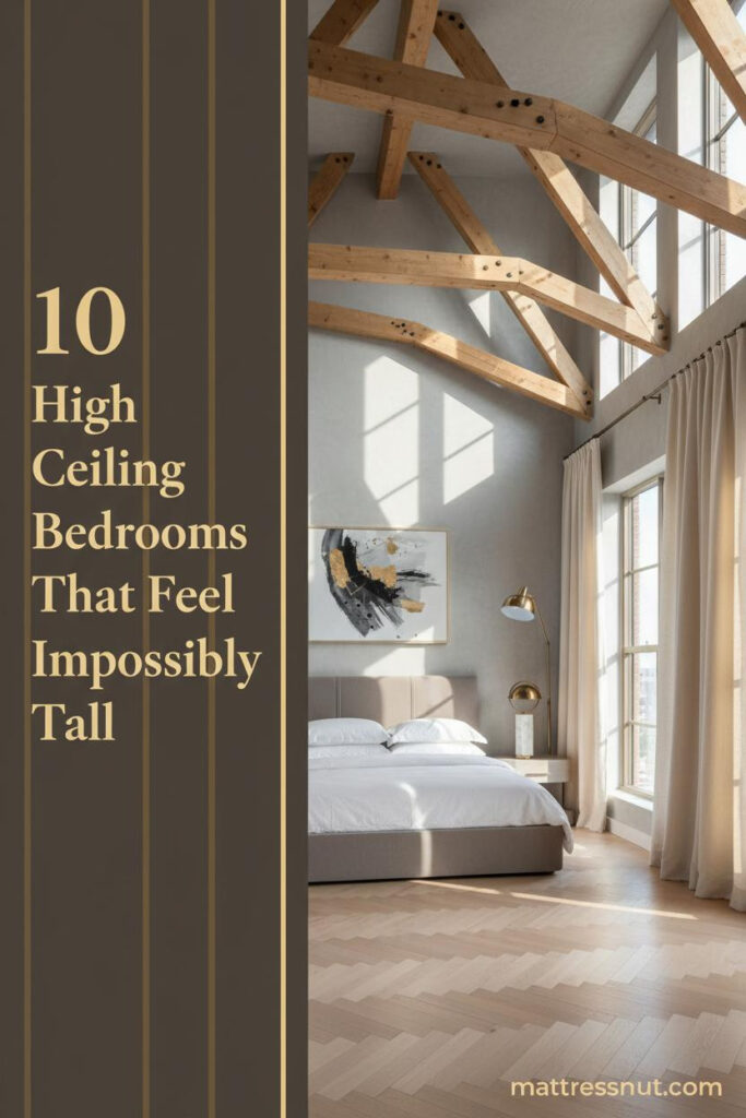 All ten of these rooms have one thing in common beyond the architecture. The bed is right. Not just styled well. Actually right. And in a room with this much vertical space, what you sleep on matters more than people admit.