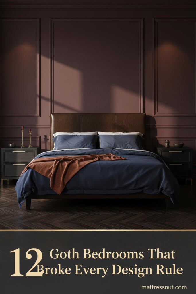 The easy win: Add a mustard wool blanket at the foot. One warm tone against a dark niche keeps the gothic bedroom aesthetic from feeling like a set piece.