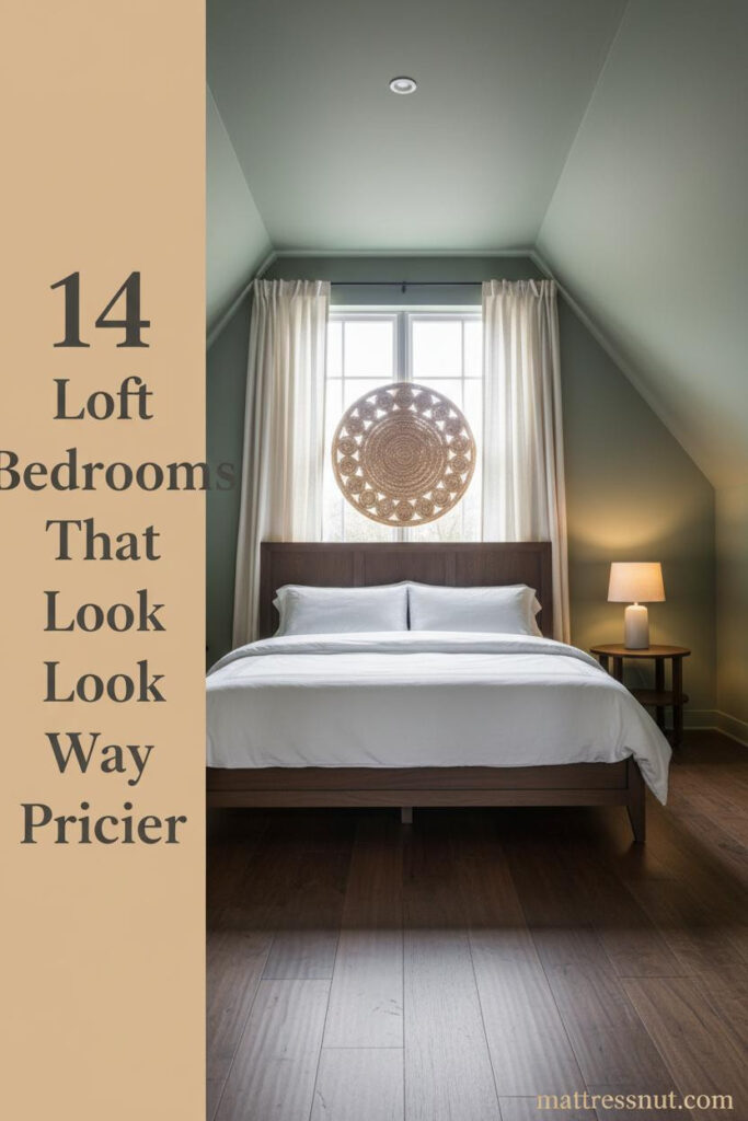 The detail to keep: A cream linen Roman shade at the dormer filters morning light without blocking it. And a woven wall hanging above the bed (not a framed print) keeps the natural material story consistent across the room. More on this approach in our loft bed ideas for small rooms.