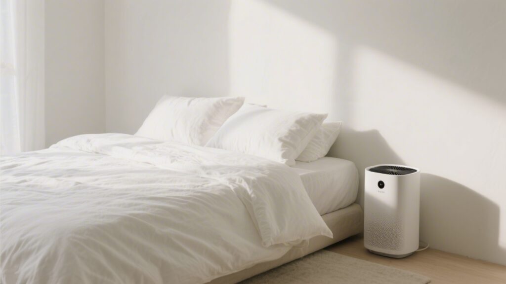 - HEPA air purifier: Reduces airborne allergen and irritant load during the 7–9 hours of bedroom exposure