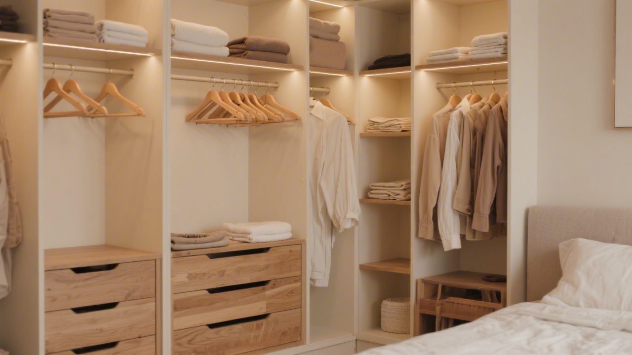 From a sleep science perspective: a closed-door closet that is visually neutral when closed, with enough internal organization that you can find things quickly and without frustration in the morning. The frustration of a chaotic morning wardrobe search increases stress hormones that carry into the next sleep cycle.