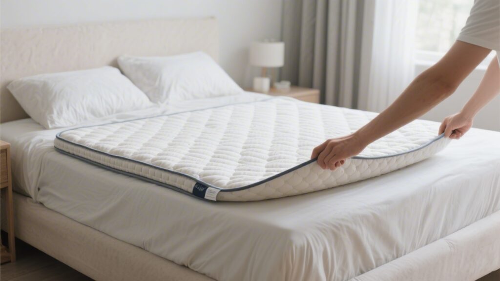 If your mattress has visible body impressions, if it is more than 7–8 years old, or if you sink noticeably into the center when you sit on the edge — your mattress needs replacement, not a topper. Adding material on top of a structurally compromised mattress does not correct the underlying sag; it adds a comfort layer over a failing foundation. This is particularly important for back pain sufferers, because sleeping in a sagged contour with a topper on top may delay the feedback signal that tells you something needs to change.