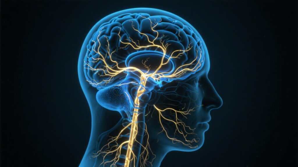 One of the brainstem's most critical sleep functions is generating REM atonia — the profound muscle paralysis of REM sleep that prevents you from physically acting out dreams. This is achieved through a pathway from the sublaterodorsal nucleus (SLD) in the pons to glycinergic and GABAergic interneurons in the ventral horn of the spinal cord, which hyperpolarize spinal motor neurons and prevent voluntary muscle activation.