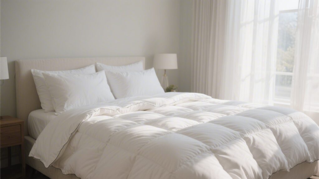 If you’ve spent time shopping for a down comforter, you already know the listings are confusing. Fill power numbers range from 400 to 900. Some say “duck”, some say “goose”, and half don’t tell you which. Construction terms like “baffle box” and “sewn-through” appear without explanation. This guide cuts through it.