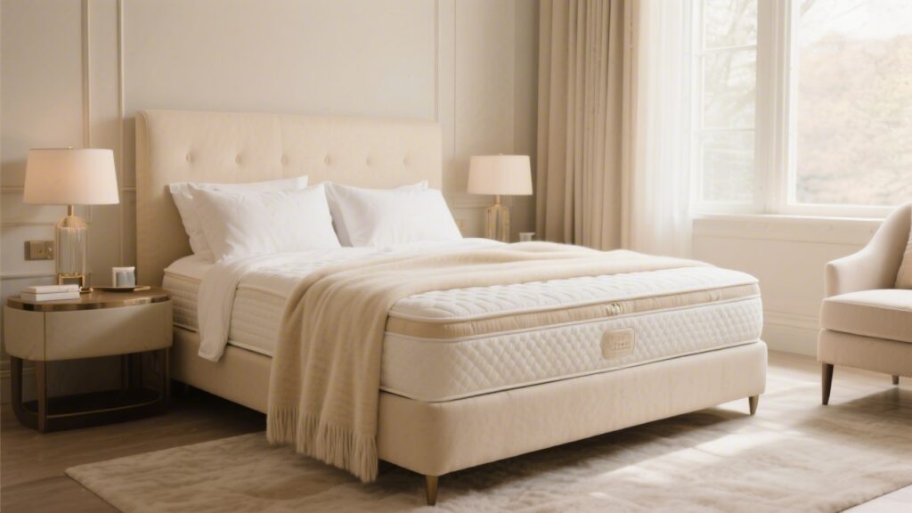 - Cashmere-blend Euro top cover: Natural fiber material replacing the Premier’s polyester-blend cover. Softer initial contact, natural temperature regulation