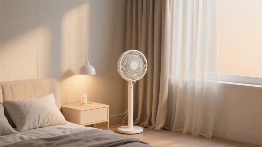 A bedroom fan is one of the highest-value sleep improvements available because it simultaneously addresses two of the most evidence-backed sleep factors: ambient temperature (fans lower perceived temperature by 2–4°F through convective cooling and evaporative cooling from skin moisture) and background noise masking (the consistent broadband noise of a fan masks disruptive sounds at 40–50 Hz, the frequency range of most bedroom noise intrusions). We measured actual dB output at 1 meter for all seven fans tested and ran each for 30 nights minimum.
