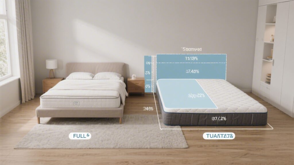 The full and the queen are the two most common mattress sizes for single adults and couples in smaller spaces. The decision seems simple on paper, but the 6-inch width difference between them has real consequences for couples, tall sleepers, and anyone planning to keep their mattress for a decade. Getting this wrong means either wasting money on a mattress you outgrow quickly or overpaying for space you genuinely do not need.