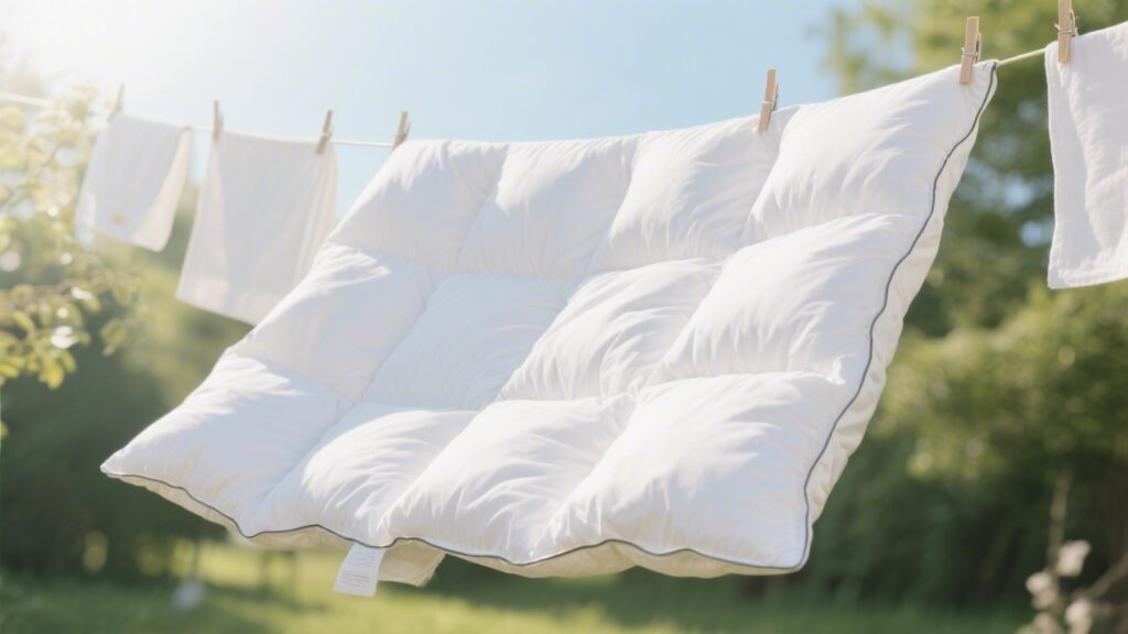Air it out: After washing the cover, hang the duvet vertically in a well-ventilated area for 2 to 4 hours per week. Airing removes accumulated moisture and prevents odor buildup between washes.