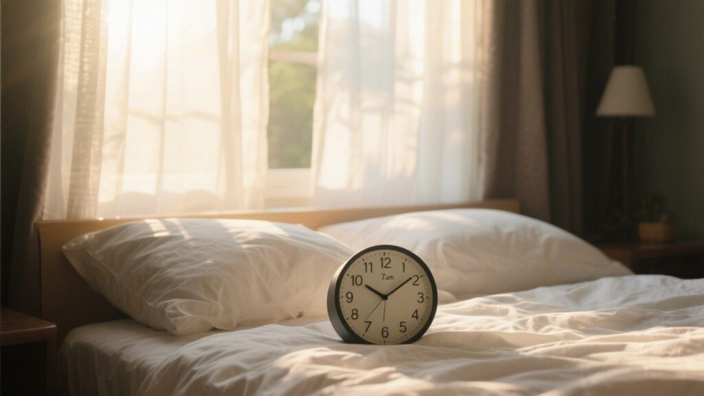 Wake time: Target wake time (non-negotiable). Set your alarm for your target wake time and get up regardless of how little you slept. Immediately expose yourself to bright light — go outside or use a 10,000 lux light therapy box for 20-30 minutes. No naps. Stay awake until 10-11 PM maximum, even if you feel tired by 7 PM. The accumulated sleep pressure will drive stronger sleep onset.
