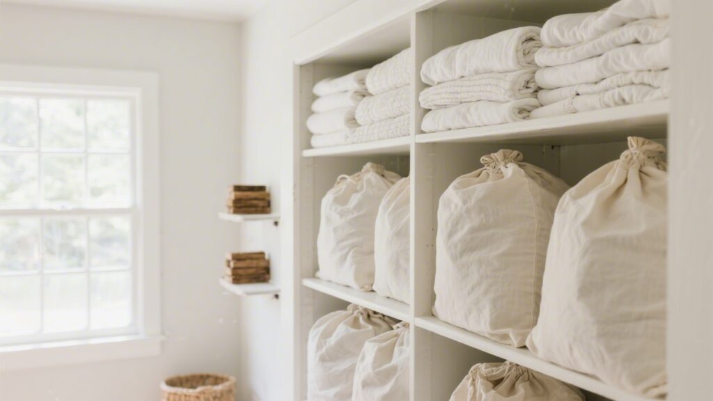 If you have multiple sheet sets, rotate them every 3-4 months. A simple system: after washing the in-use set, place it at the bottom of the storage stack and pull the next set from the top. This prevents any set from sitting unused long enough to yellow or develop storage odors.