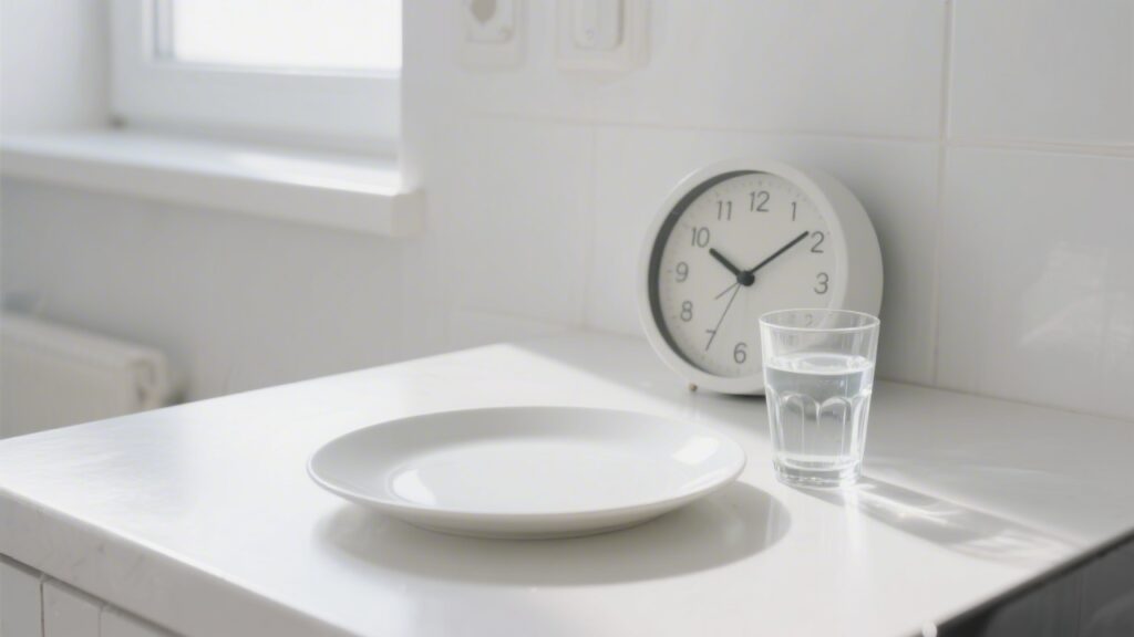Time-restricted eating (TRE), typically an 8–10 hour eating window, has emerged as the most researched form of intermittent fasting for circadian health. A landmark 2019 study by Sutton et al. in Cell Metabolism assigned overweight men with metabolic syndrome to a 6-hour eating window (eating all food before 3pm) or a 12-hour window. The early TRE group showed significant improvements in insulin sensitivity, blood pressure, and — critically — lower levels of evening cortisol, which improved sleep quality.