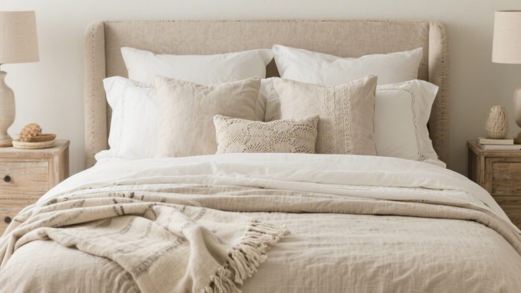 - Three textures minimum: The best layered beds have at least three distinct textures — smooth sheets, a medium-texture duvet cover, and a third contrasting texture in the throw.