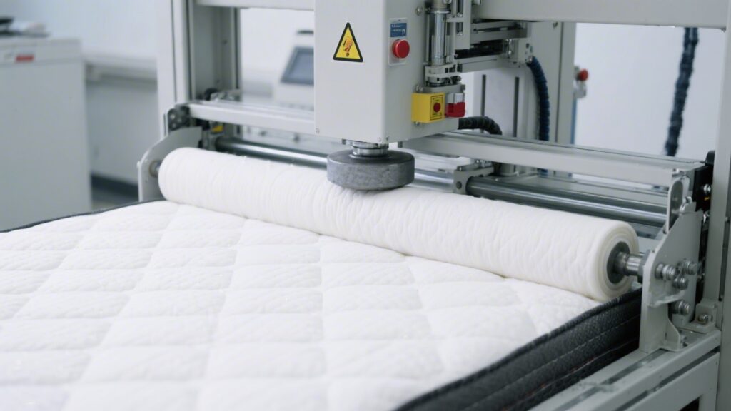 The industry standard for mattress durability testing is ASTM F1566, the Standard Test Methods for Innerspring and Mattress Assemblies. The core procedure uses a rollator: a 240-lb cylindrical roller that traverses the mattress surface end-to-end in a standardized pattern, simulating the loading and unloading cycles of daily use.