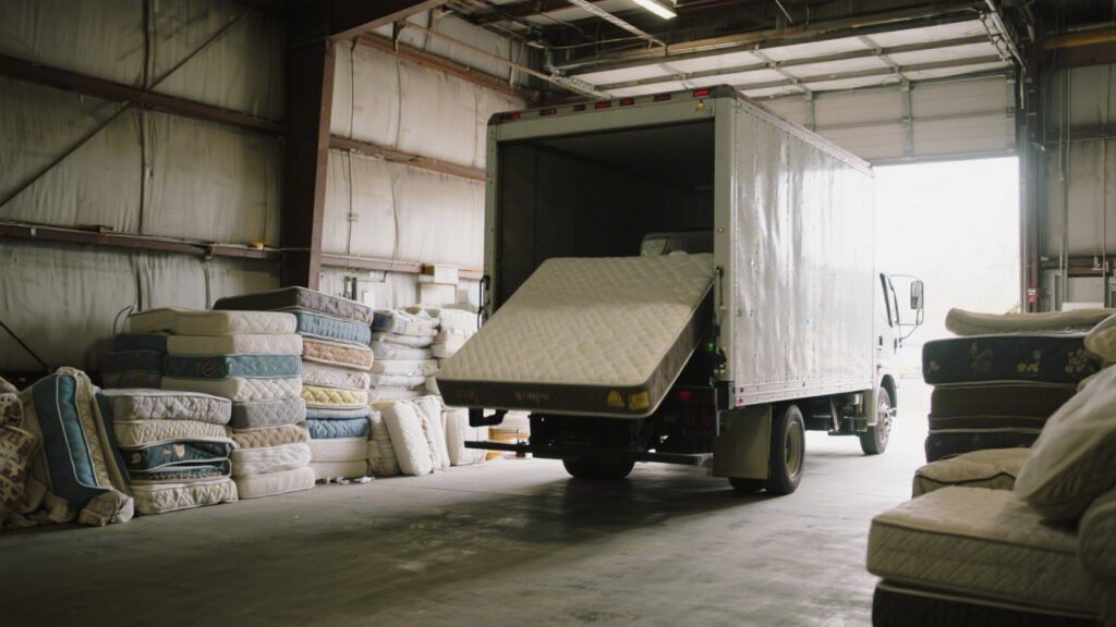 What happens to collected mattresses: disassembly into component materials (steel, foam, fiber, fabric), with each material stream going to recycling facilities, donation programs, or (in the worst case) landfill. The distinction matters when evaluating take-back quality.