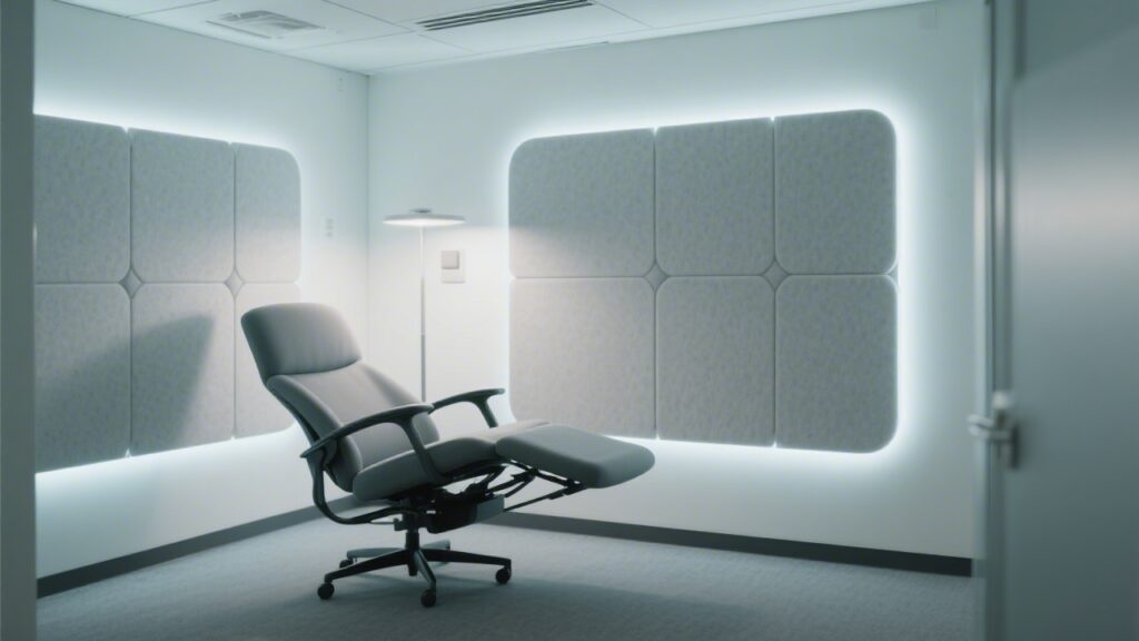 Mid-range ($1,500–4,000): A dedicated nap pod chair (IKEA POÄNG modified, or Herman Miller Nap chair), acoustic room divider panels, programmable wake light, and a digital booking system (free via Calendly or Google Forms).