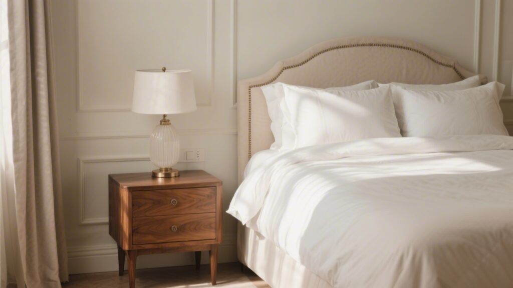 Your nightstand height matters more than you think. Reaching up or straining down to grab your phone, glass of water, or book in the middle of the night can disrupt your sleep and cause shoulder or neck tension over time. The fix is simple: match your nightstand height to your mattress height.