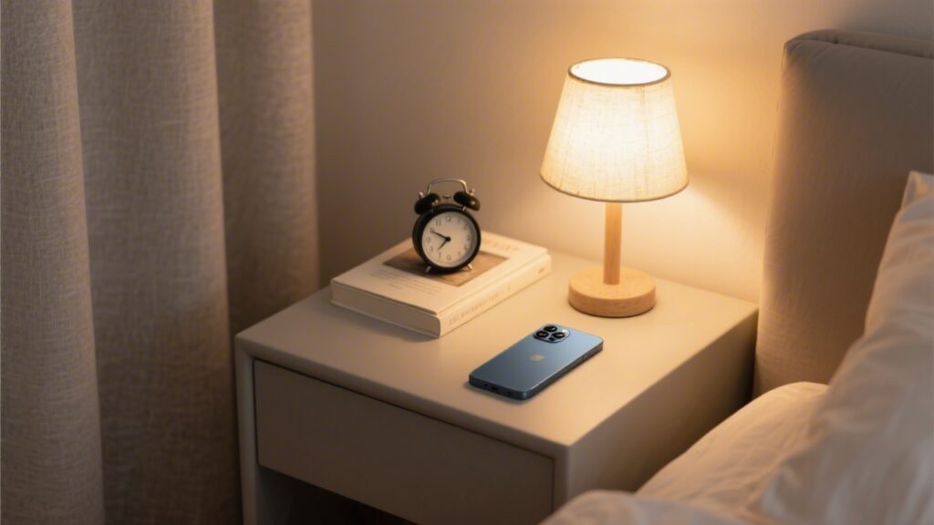 | Audiobook or calm podcast | Passive, non-interactive | Set sleep timer; avoid news/finance |