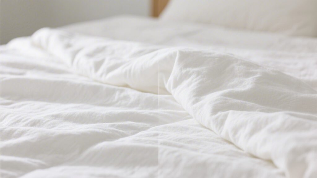 Polyester (and polyester blends) are the budget-friendly default in most discount bedding. Synthetic fibers are highly uniform, which produces a smooth, wrinkle-free surface — but at the cost of breathability.