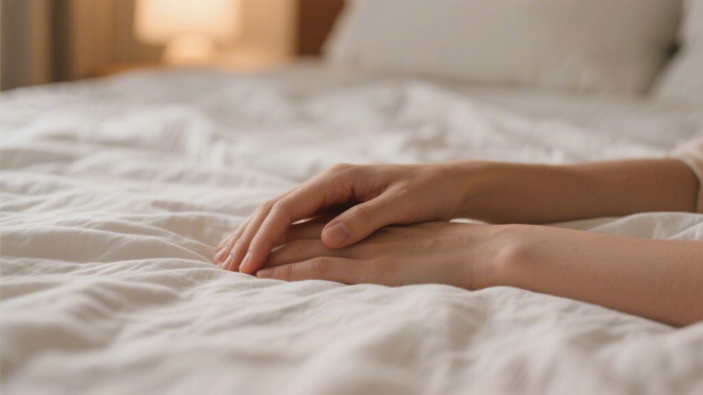 Feet: Curl your toes tightly downward. Hold 5 seconds. Release completely. Notice the warmth and heaviness spreading through the soles of your feet.