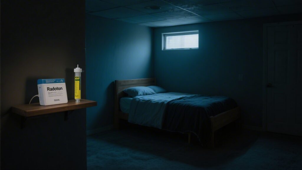 Radon itself does not directly trigger sleep symptoms — it is odorless and has no immediate detectable effect. The concern is chronic lung exposure to radon decay products (radioactive polonium-218, lead-214) that deposit in lung tissue. Over years, this causes cumulative lung damage that can manifest as chronic cough, increased respiratory infections, and eventually more serious respiratory disease — all of which disrupt sleep.