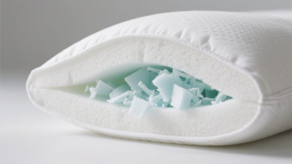 Fill density is the first quality indicator. Higher-density foam (4+ lb/ft³) holds shape longer and resists clumping. Lower-density fill compresses faster and tends to form lumps that create uneven support. Some brands blend shredded foam with other materials — gel beads for cooling, latex pieces for responsiveness — which changes the feel but can also complicate washing.