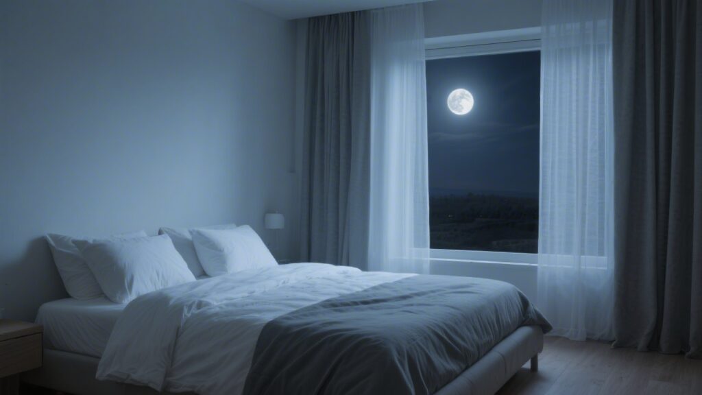 Remove all time-telling devices from the bedroom or face them away from the bed. Sleep anxiety feeds on information about how much time has passed and how much remains. Every clock-check triggers a calculation that generates cortisol. Starve the anxiety of its primary input.