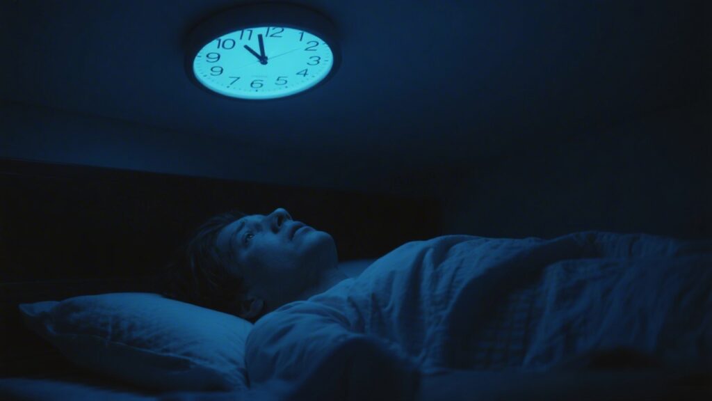 The solution is complete clock removal from the bedroom. Face the clock away from the bed. Remove your phone from the room. Sleep anxiety feeds on information about time — starve it.