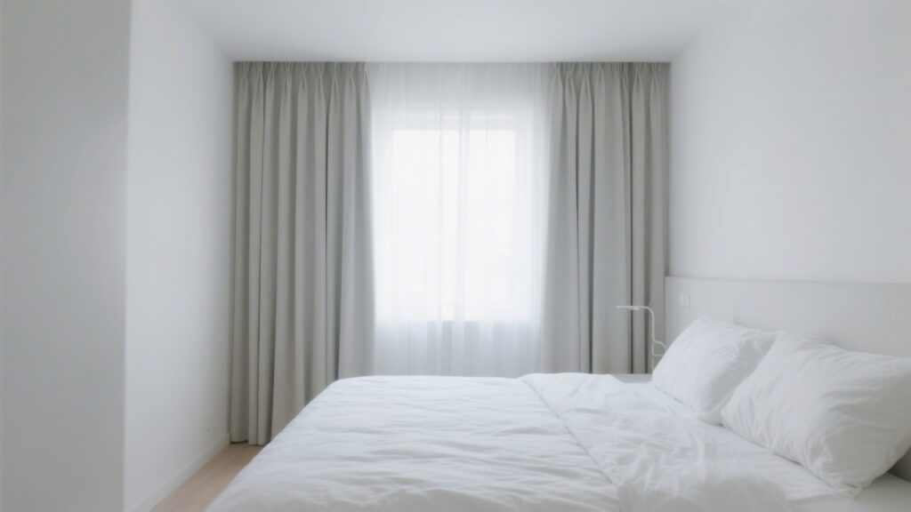 - Blackout curtains or blinds: highest impact, permanent solution. Curtains with thermal lining add temperature benefits.
