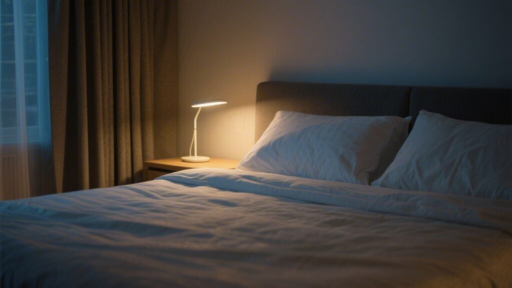 - Blackout curtains: Even low light activates visual processing during the pre-sleep window.