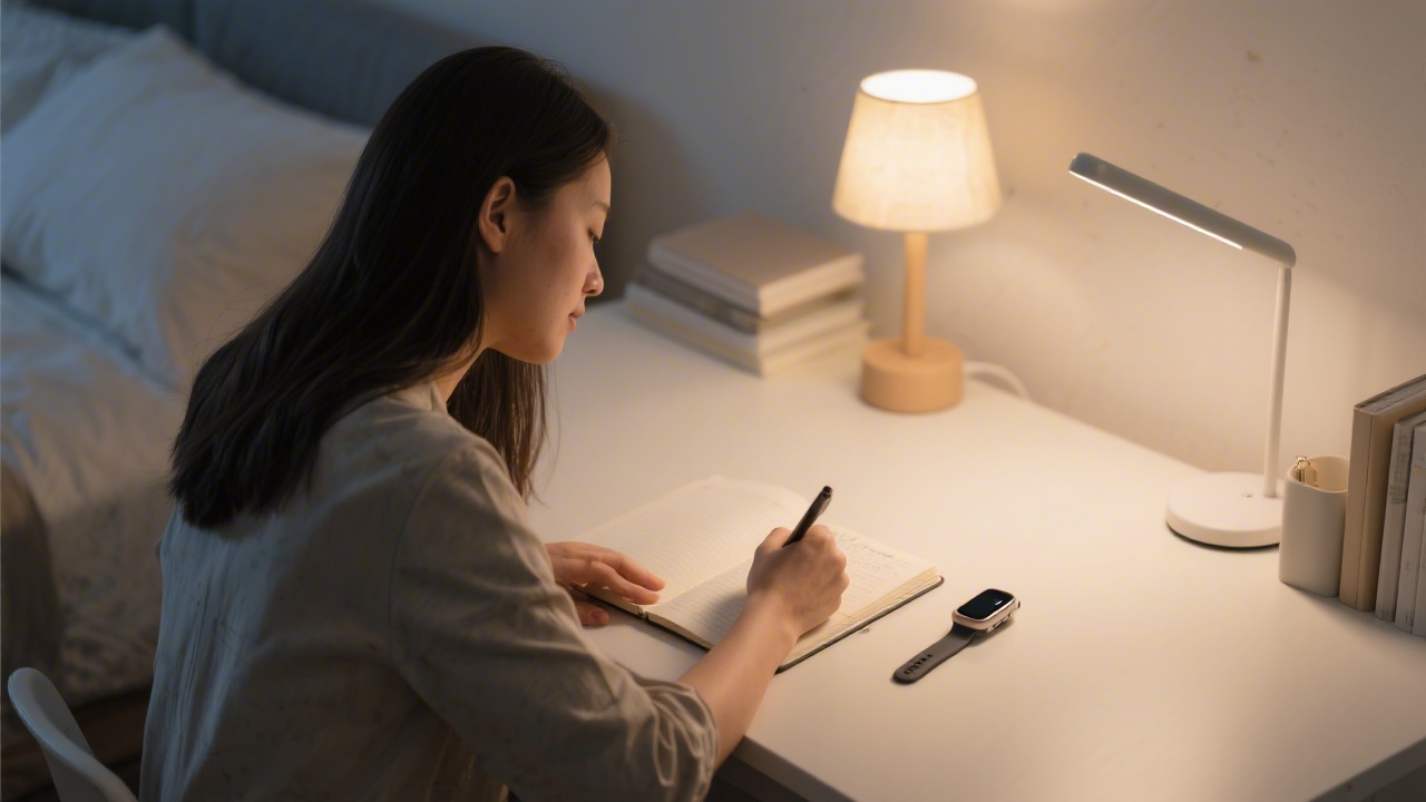 Cognitive deactivation goal: "Ten-minute written task-dump before bed, every night." This targets the cognitive arousal that delays sleep onset in anxious or high-workload periods.