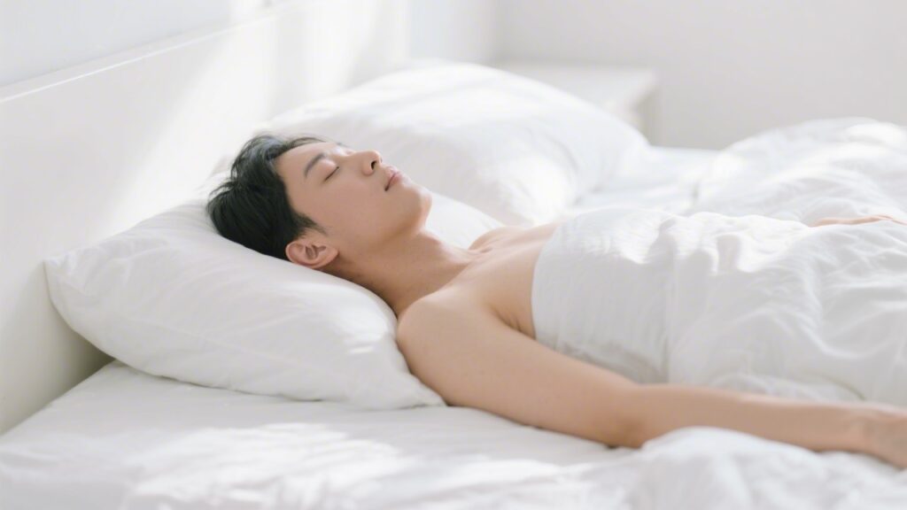 - Back sleeping at mid-range: Arm resting at the side, slightly abducted (10-20 degrees), elbow slightly bent and supported. The frozen shoulder's mid-range (approximately 30-60 degrees of abduction) is typically its most comfortable zone.