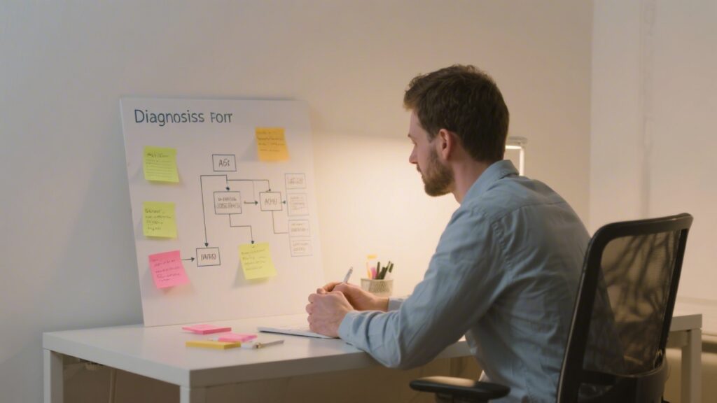 Most sleep advice is generic. "Practice good sleep hygiene" is not useful when your specific problem is waking at 3am with a racing heart. "Improve your environment" does not help when you already have blackout curtains and a cool room but still cannot fall asleep. This guide works differently: describe your specific symptom, follow the decision tree, reach a specific actionable fix.