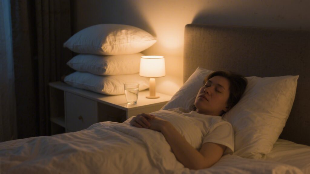 Elevate your head by 30–45 degrees. Lying flat allows postnasal drip to pool at the back of the throat, triggering coughing. Propping up with two to three pillows (or a wedge pillow) uses gravity to reduce congestion drainage into the airway. This single change dramatically reduces nighttime coughing episodes for most upper-respiratory illnesses.