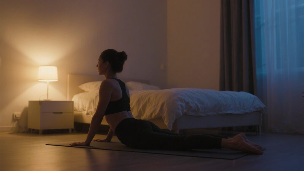 The optimal window for pre-sleep stretching is 30–90 minutes before your target sleep time. Earlier than 90 minutes and the parasympathetic effect partially dissipates. Later than 30 minutes and light stimulation from movement can delay sleep onset in sensitive individuals.