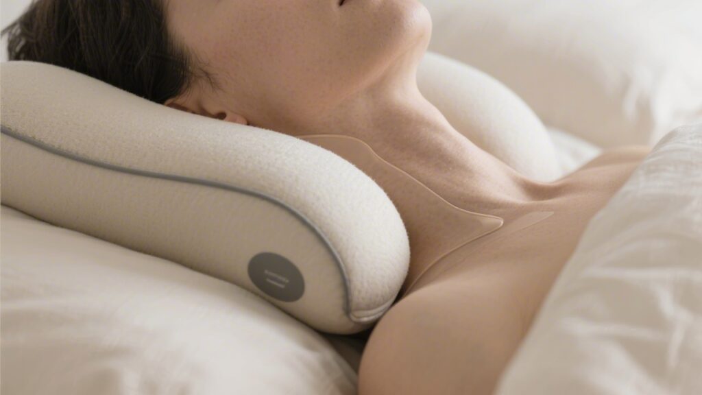 The problem is that most people use pillows that are too lofty. The pillow that feels comfortable when you first lie down — thick, supportive — is often placing your neck at 20 to 30 degrees of forward flexion. Over a full night, this is the equivalent of holding your phone for 8 hours straight.
