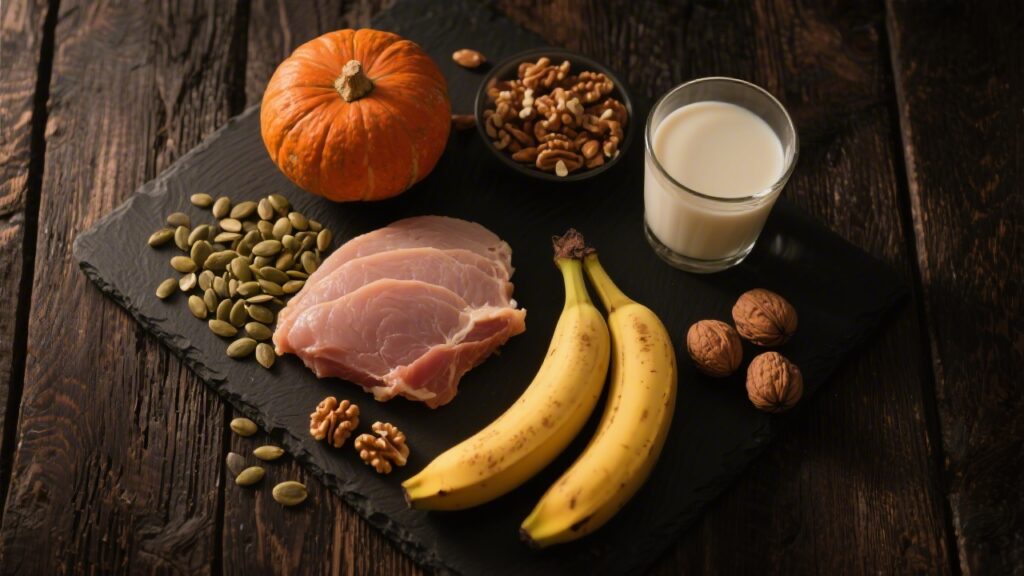 You have probably heard that turkey makes you sleepy at Thanksgiving. The mechanism is real, but the story is more nuanced. Tryptophan — an essential amino acid found in many protein foods — is the raw material your brain uses to make serotonin and, ultimately, melatonin. Understanding which foods contain it and how to eat them is more useful than any single food tip.