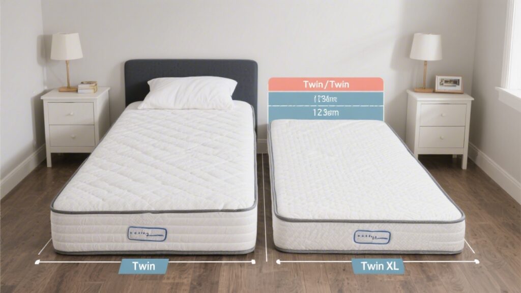 The difference between twin and twin XL looks minor on paper — just 5 inches of length. But those 5 inches are the difference between a mattress a 6-foot person can sleep comfortably on and one that leaves their feet hanging off the end. Understanding exactly when that length matters helps you avoid buying the wrong size.