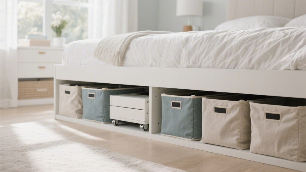Under-bed storage only works if you have adequate clearance. Measure from the floor to the bottom of your frame or slats before buying any organizers.