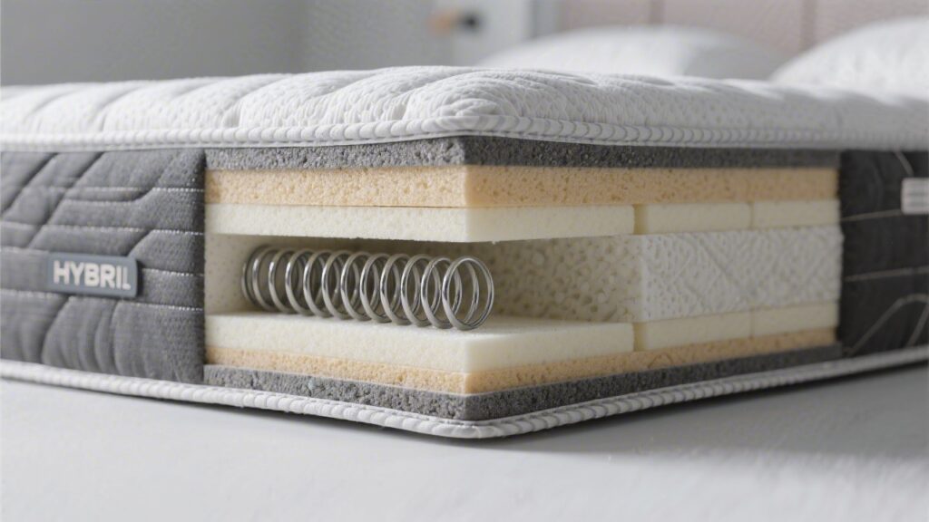 A hybrid mattress combines a pocketed coil support core with multiple comfort layers — typically memory foam, latex, or poly-foam — sitting on top. The result: the pressure relief of foam with the bounce, airflow, and edge support of coils. It is currently the most popular mattress category in the United States, and for good reason.